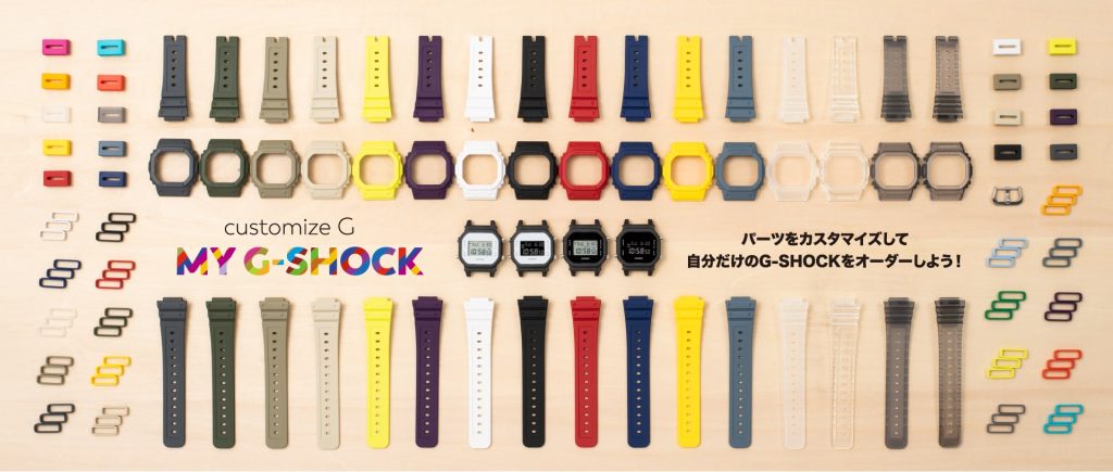 今回の主テーマである「MY G-SHOCK」は、お客様のニーズにお答えできるDXの取り組みとして2021年10月に提供を開始したサービスになります。初号機を引き継ぐスクエアデザインの『DWE-5610』をベースに、ベゼル・バンド・フェイス・遊環などのパーツの色を選び自分好みのモデルが作れる新たなサービスです。ベゼル・バンド・遊環は、それぞれサービス開始時の限定カラーを含め19種類以上のバリエーションを取りそろえ、約6億5,800万通りの組み合わせが可能です。