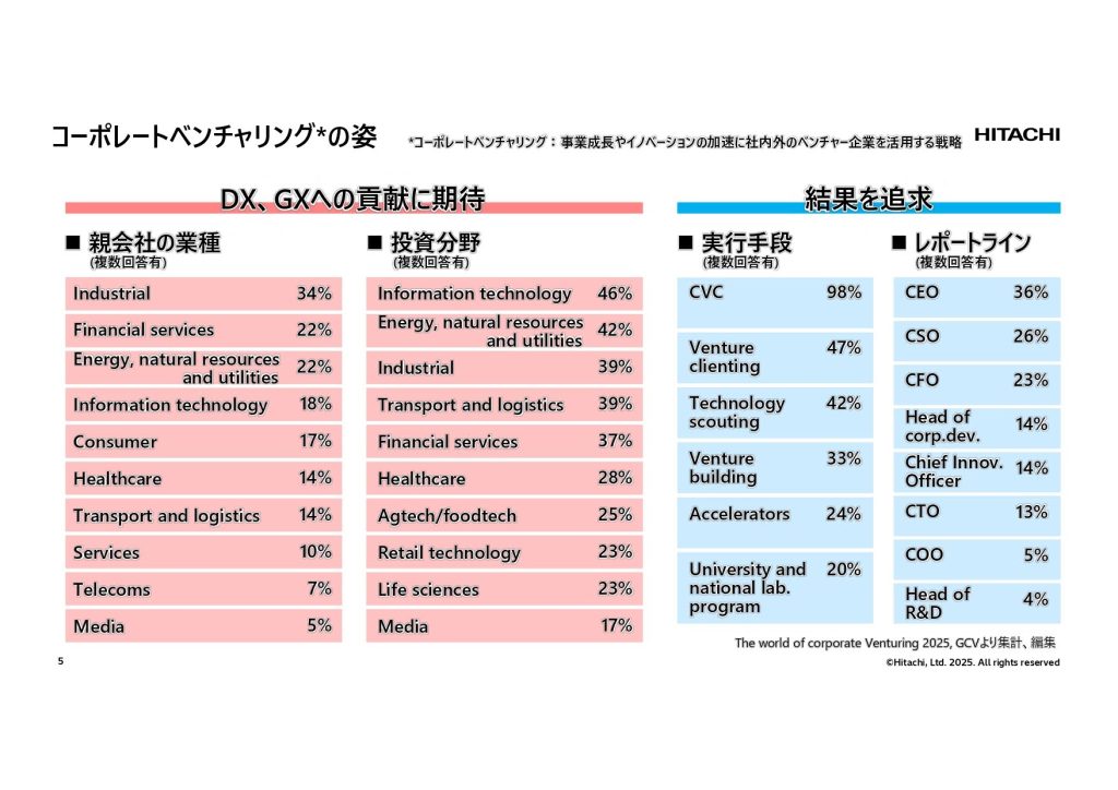 本レポートでは、CVCを巡る世界の最新動向から、日立が実践するCVCとCVD(Corporate Venture Development and Deployment)の連携モデル、そして成功に導くための要諦まで、船木氏の講演内容を余すところなくお届けします。