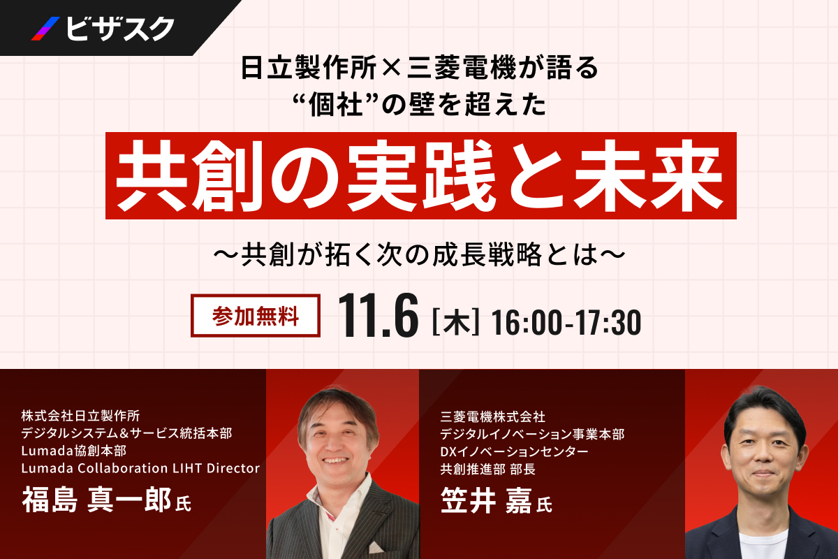 本セミナーでは、日立製作所の福島氏、三菱電機の笠井氏をお迎えし、それぞれが “共創推進” を