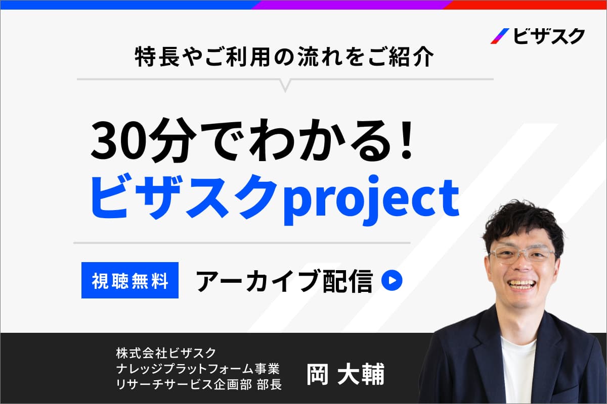 『30分でわかる!ビザスクproject〜特長やご利用の流れをご紹介〜』をアーカイブ配信いたします。